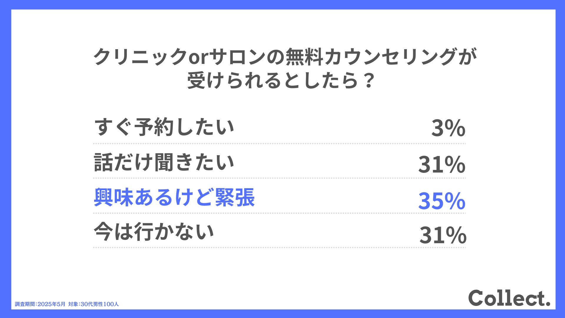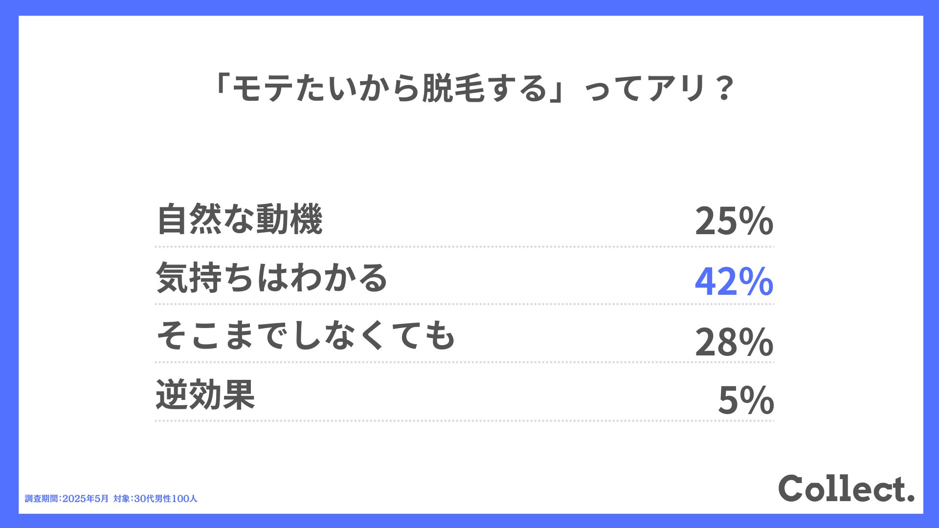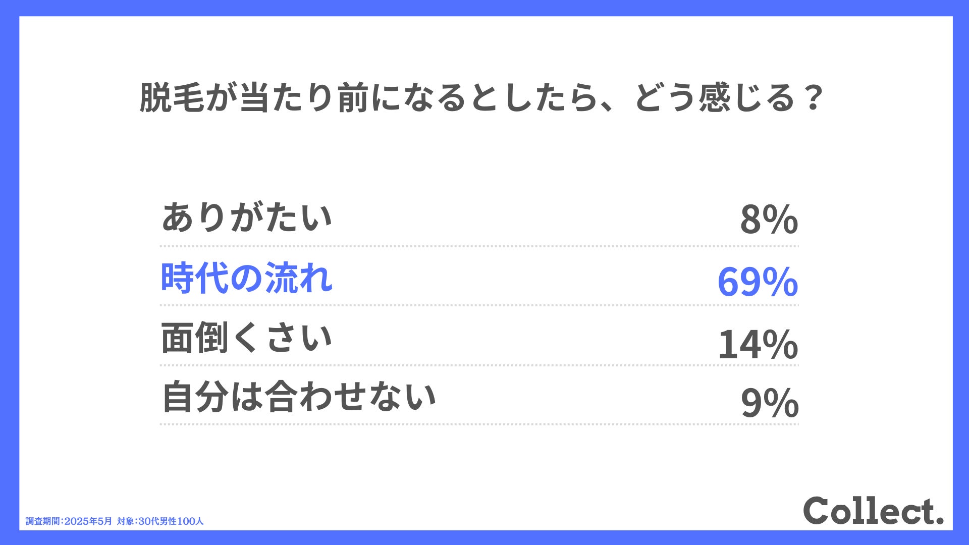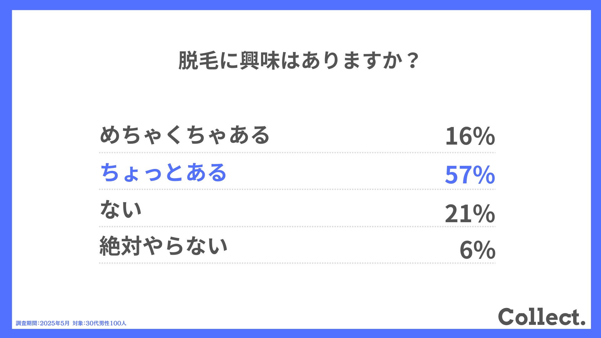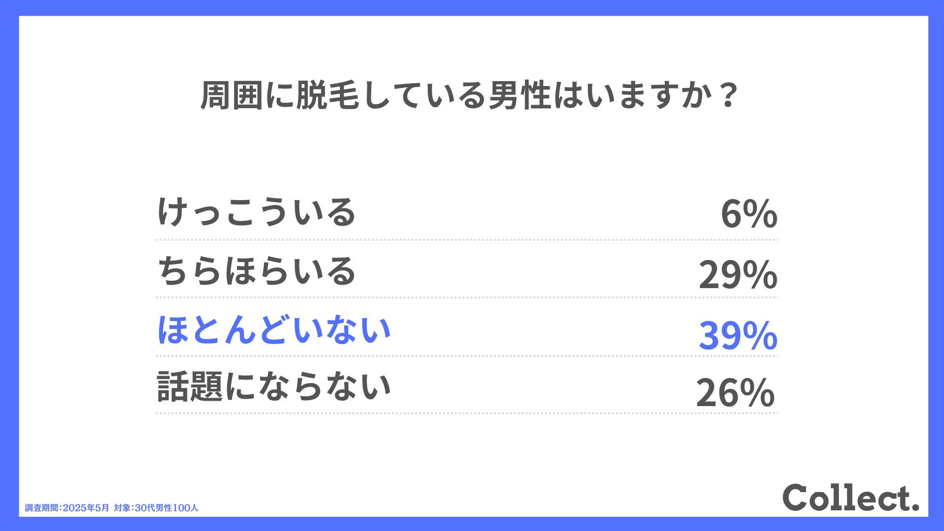 本アンケート結果や画像をご利用いただく際は、引用元として「Collect.(コレクト)URL(https://www.dm-s.co.jp/collect/mens-hair-removal-list/)」へのリンク設置をお願いいたします。