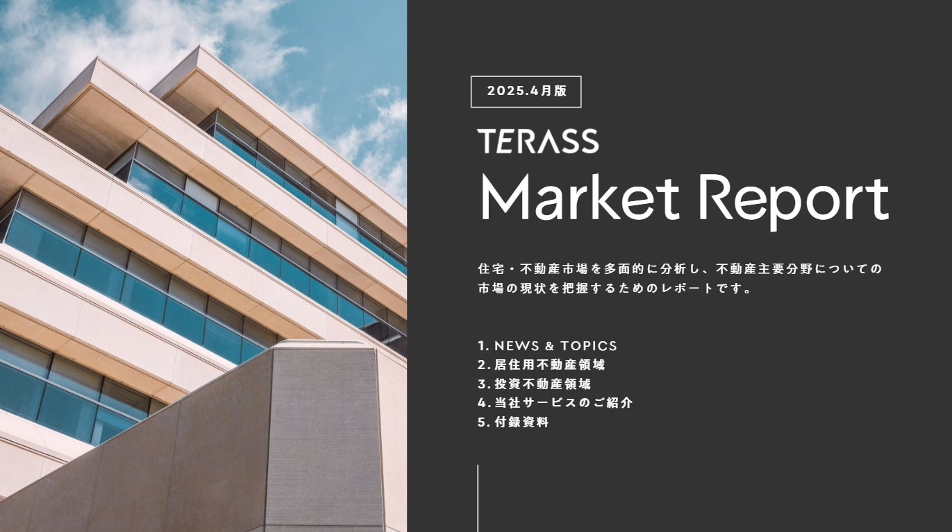不動産仲介関連サービスを提供する株式会社 TERASS(東京都港区、代表取締役:江⼝亮介、以下TERASS)は、居住用・投資用不動産におけるマーケット動向をまとめた「TERASS Market Report」2025年4月版を公開しましたので、ぜひご覧ください。