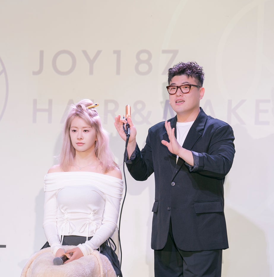 第一部として渋谷ばぐちかスペースで行った「プレス様向けセッション」では、JOY187プロデュースのヘアケアブランド「187LABEL」を手がけた4人のTOPクリエイティブディレクターをスペシャルゲストに迎え、サロンのご紹介や予約方法、商品のご紹介、サロンで実際に受けることができる「最旬のK-POPアイドルのヘア&メイク実演ショー」を行いました。