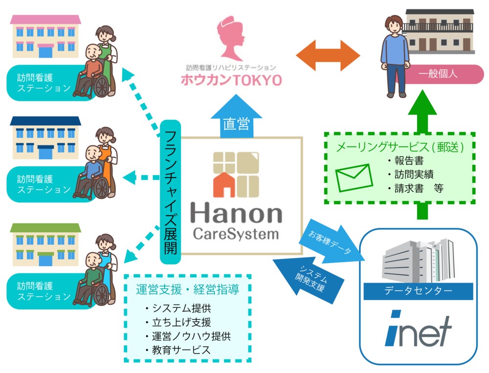 株式会社アイネット(東証プライム:コード番号9600、本社:神奈川県横浜市、代表取締役:佐伯 友道、以下「アイネット」)は、この度、訪問看護ステーション「ホウカンTOKYO」を展開するハノン・ケアシステム株式会社(本社:東京都杉並区、代表取締役:河田 浩司、以下「ハノン・ケアシステム」)に出資しましたので、お知らせします。