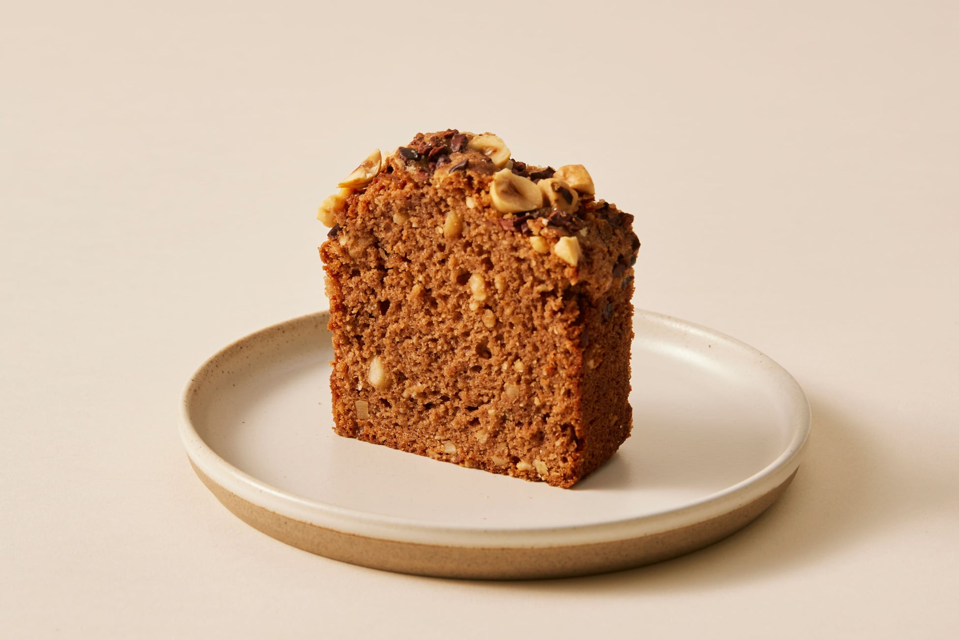 ヘーゼルナッツなどのナッツのペーストにチョコレートを合わせたジャンドゥーヤを生地に贅沢に使用し、ホリデーにぴったりのケーキをご用意しました。ナッツとチョコレートの香りが口いっぱいに広がり、ナッツのザクザクとした食感としっとりとした食感に、思わず顔も綻んでしまうようなケーキです。トップにはカカオニブ、ヘーゼルナッツ、ケーンシュガーを飾りつけて焼き込み、きらきらとした輝きがホリデーのわくわく感を高めてくれる一品です。