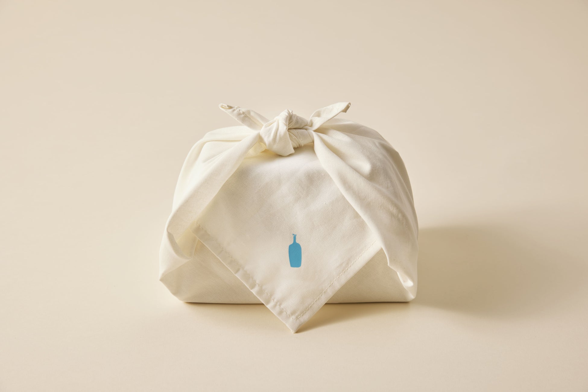 ホリデーシーズン中、全国のブルーボトルコーヒー カフェにて「フロシキラッピング」(660円)を販売します。贈り物を渡した後も、日常生活でご活用いただける環境に優しいラッピング資材としてご用意しました。