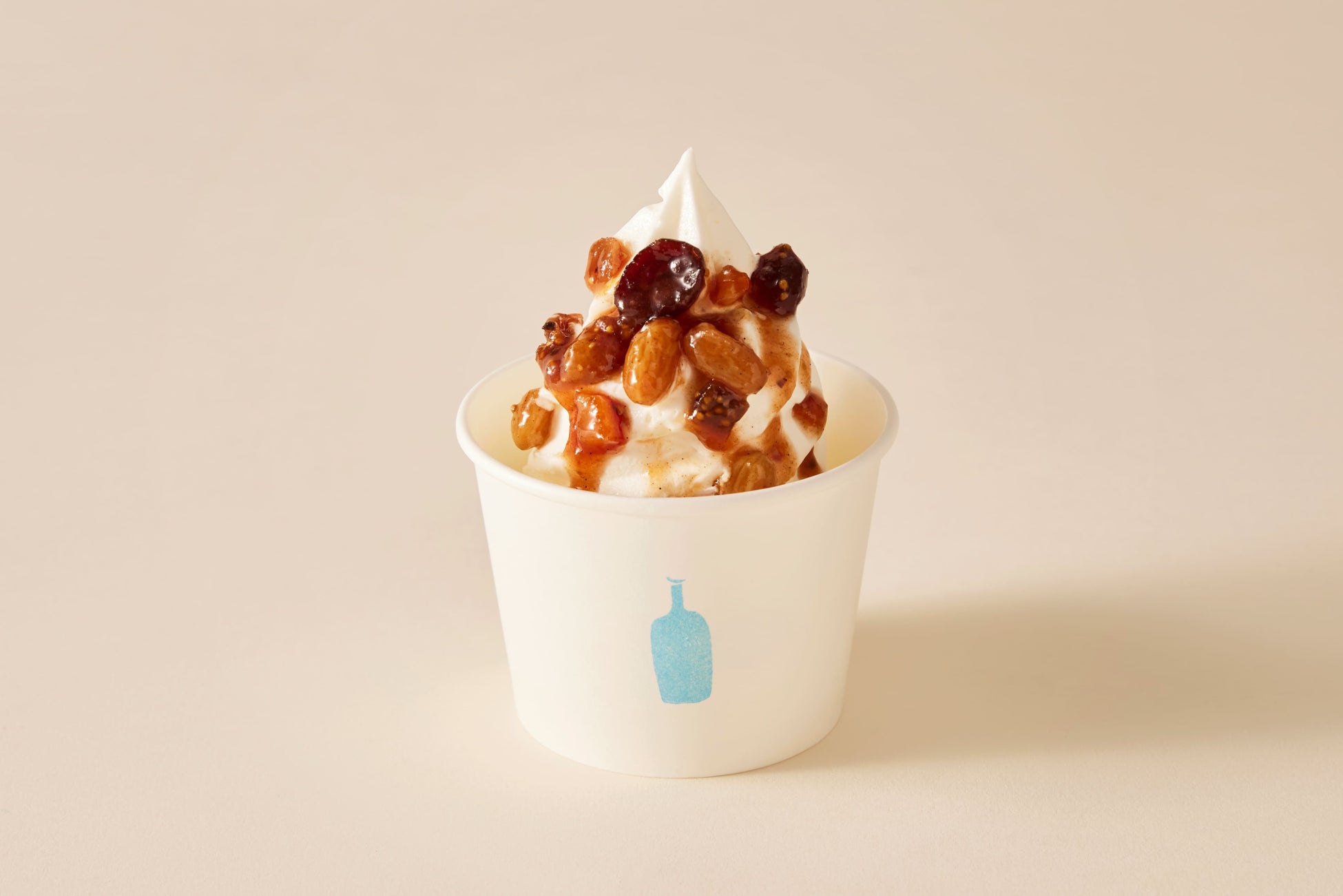 北海道・美瑛牛乳を使用したミルクソフトに、レーズンやアプリコット、いちじくなどのドライフルーツにフレッシュジンジャーとスパイスを加え、フルーツピューレで炊き込んだホリデー限定のジャムをトッピングしました。なめらかでやさしい甘みのミルクソフトと、ドライフルーツの食感やスパイス感のコントラストをお楽しみください。