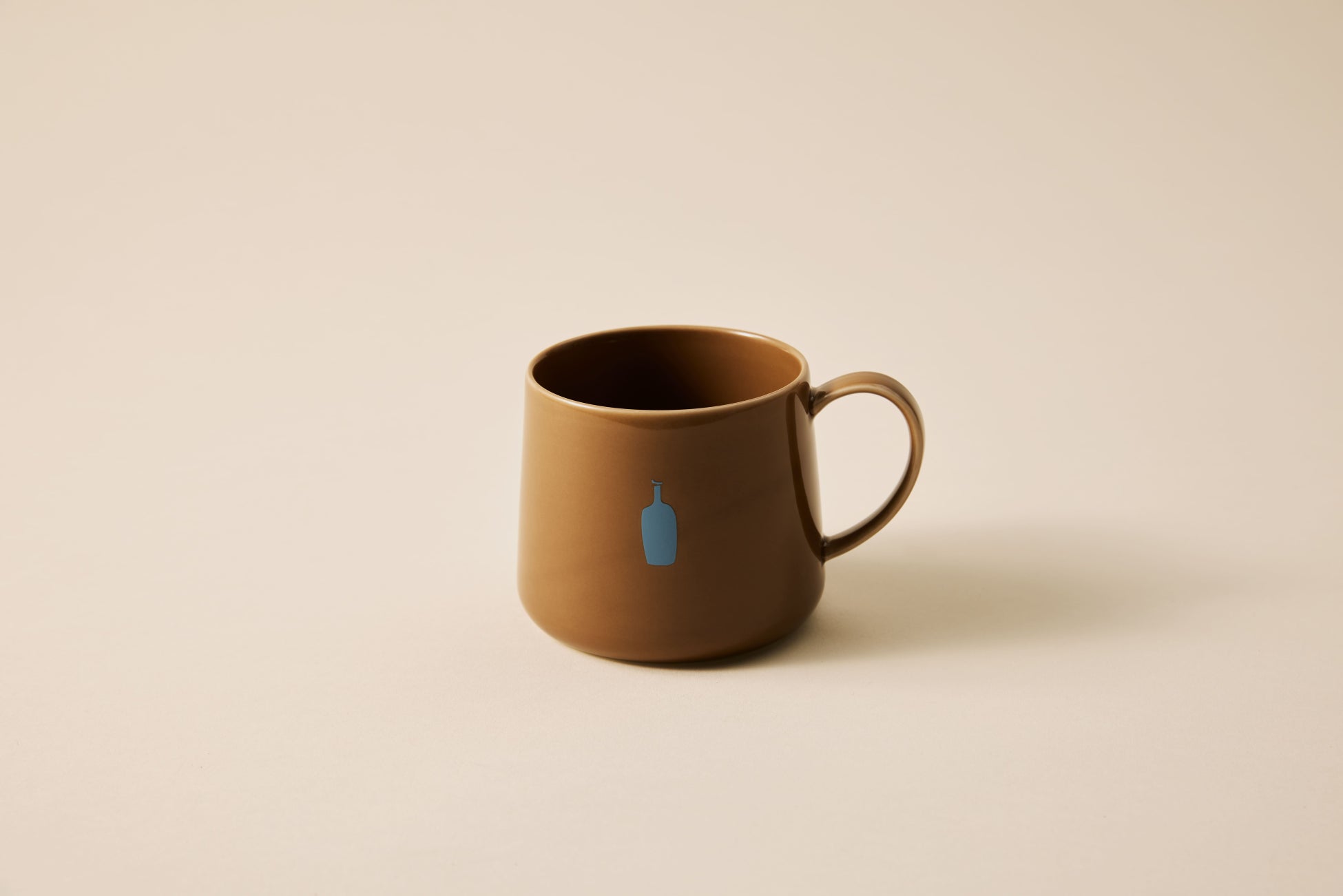 ブルーボトルコーヒー カフェでもドリンクやフードのご提供に使用しているKINTO(キントー)とコラボレートして製作したマグカップを、今年のホリデーカラーのひとつである深いキャラメルカラーでご用意いたしました。KINTOのFARO(ファーロ)シリーズのカップをベースに、天草半島で採掘された天草陶石に砂や岩を砕いたものを混ぜた砂岩土を生地に使用。あたたかみやクラフト感のあるマグカップで、取手近くにあるさりげないボトルロゴがポイントです。