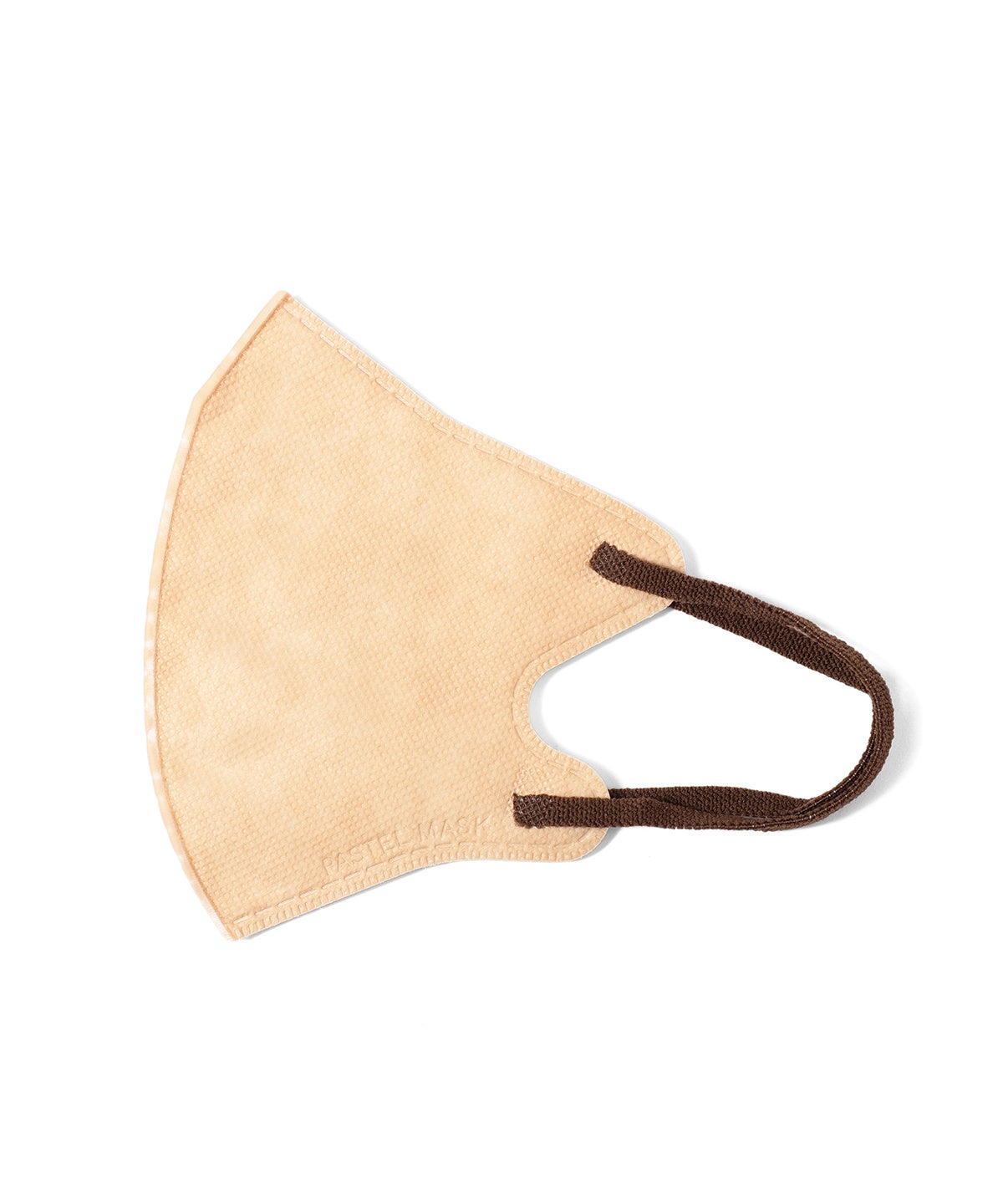 肌なじみの良いベージュとコード部分が味噌カラーのかわいい配色の不織布マスクです。高密度フィルターを使用した3層構造で、肌に触れる部分はシルクタッチ生地を採用しています。