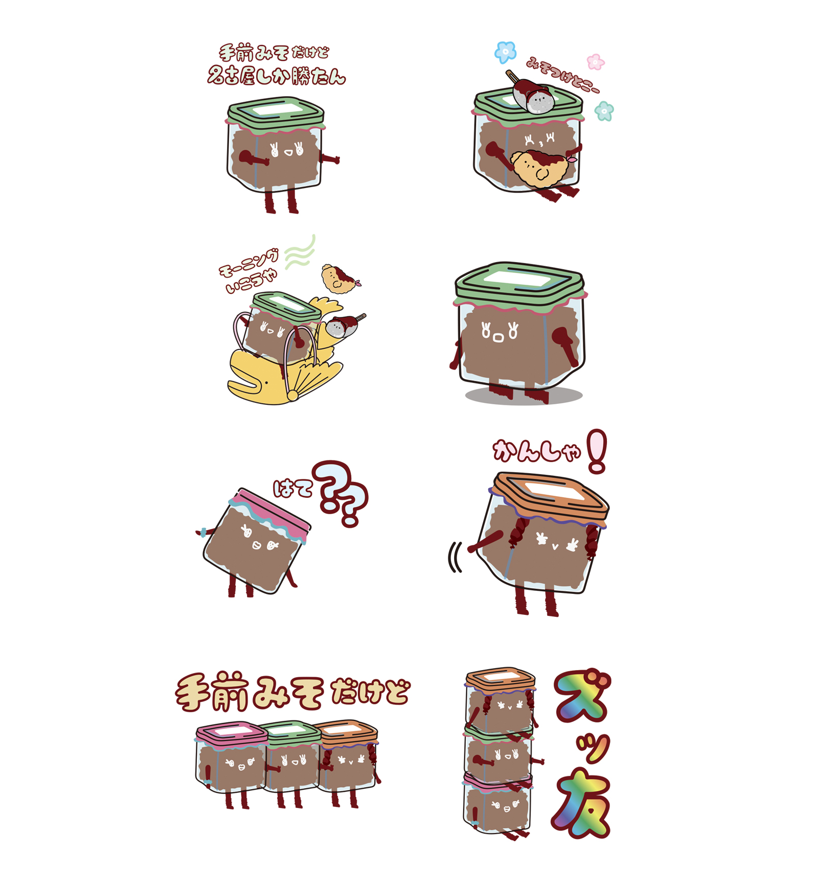 「手前みそちゃん」とユニークな仲間たちがスタンプになりました。