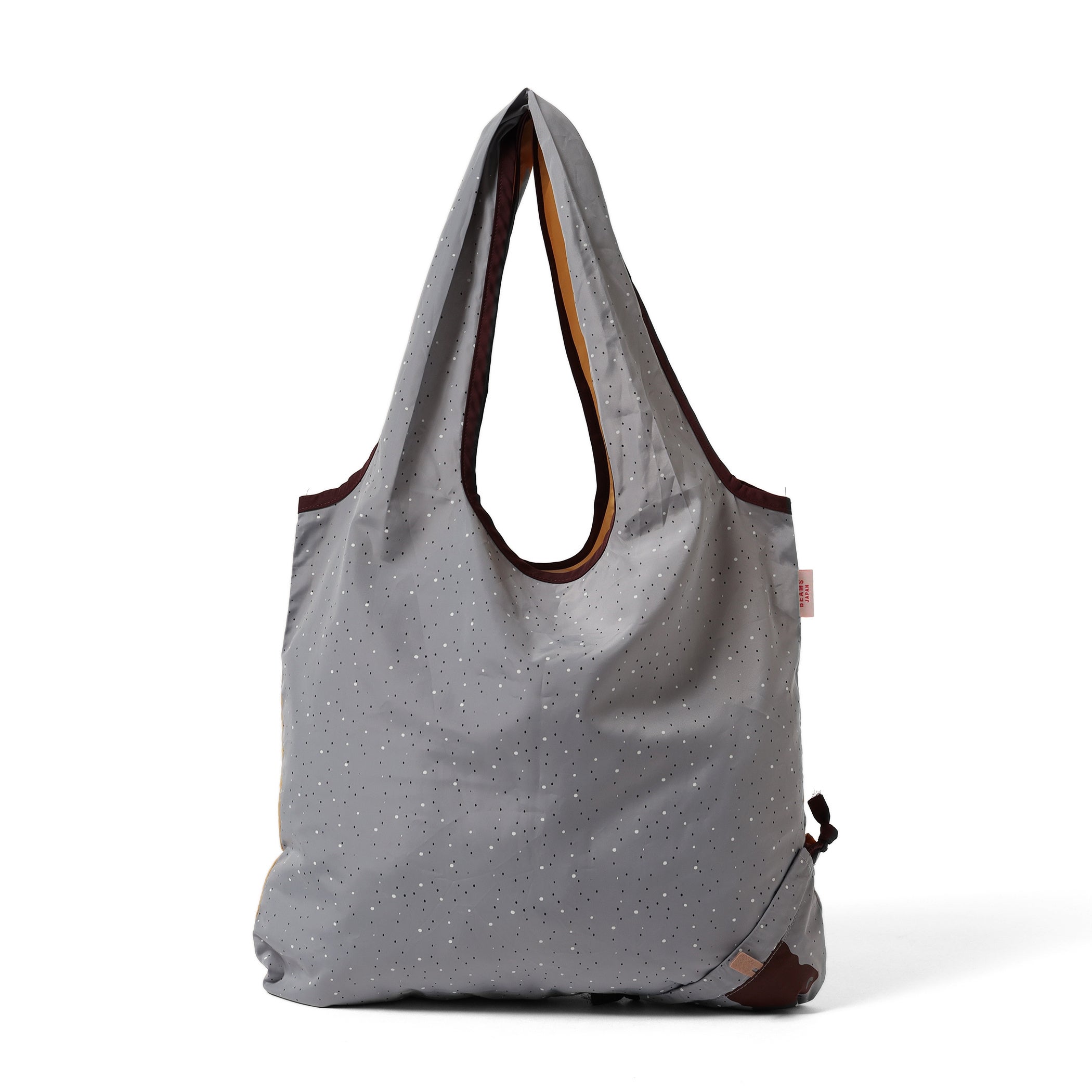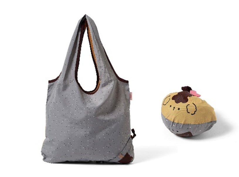 「手前みそちゃん」のペット「えびふらいぬ」と「でんがくねこ」の両面プリントエコバッグです。かわいいまんまるフォルムのコンパクトサイズにすることも可能です。