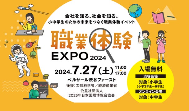 職業体験EXPOは2022年に初開催され、2024年で3回目の開催になります。「子どもと社会の出会い」をテーマに、全国の子どもたちに企業・団体・官公庁の取り組みや事業活動を学べる機会を提供することを目的としています。約20の異なる企業が一同集まり、今まで社名しか知らなかった会社がセミナーやワークショップなどで具体的にどのような事業を行なっているのかを実際に目で見て、体験ができるため小中学生にとって将来の職業選択を広げていただけるイベントです。これらの「体験」を通じて得た学びや気づきが子どもたちの「生きる力」を育み、日々の暮らしから社会への関心へと視野を広げる機会にもなります。https://shokugyotaiken.com/event/227