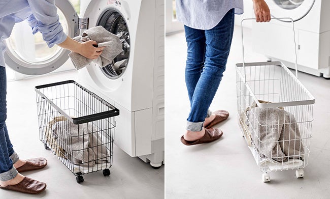 ランドリーバスケットタワー キャスター付きワイド&ロー