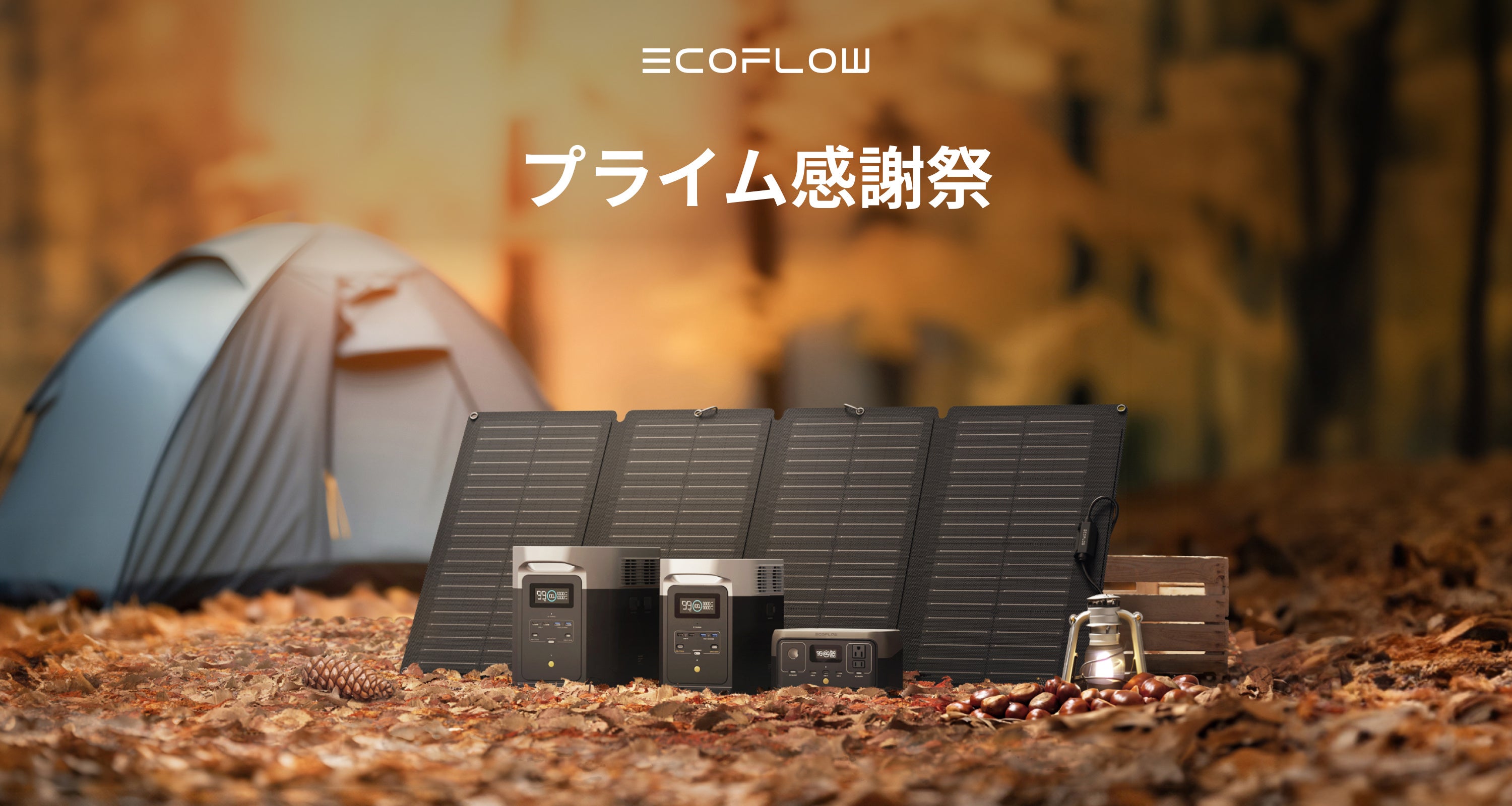「プライム感謝祭」は、Amazonプライム会員のお客様にむけた新たなセールイベントで、日本での開催は今回が初めてとなります。夏のAmazonプライムデーを逃してしまった方は、この機会を通じてEcoFlowのポータブル電源とソーラーパネルは大変お求めやすい価額でご購入いただけます。