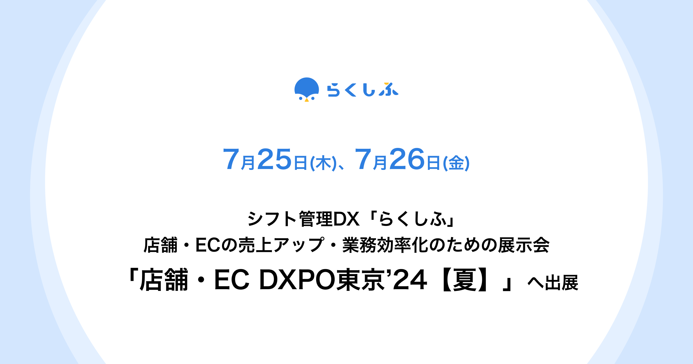 クロスビットのシフト管理DX「らくしふ」、店舗・ECの売上アップ・業務効率化のための展示会「店舗・EC DXPO東京’24【夏】」に出展