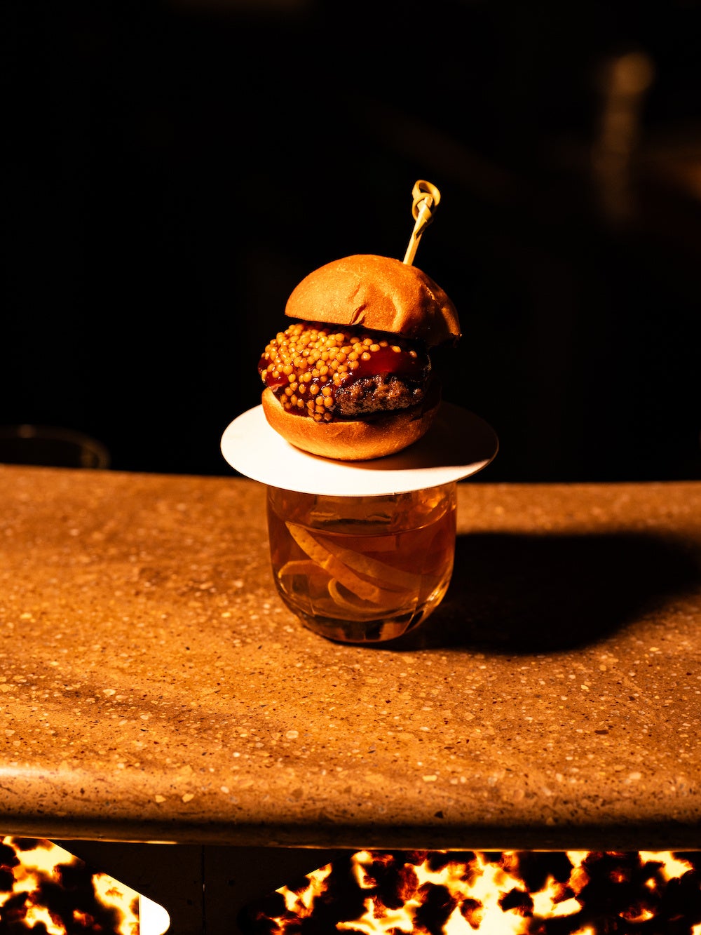 カクテルは全5種、「韓国」カンジャンセウ×ソジュ、「アメリカ南東部」ミニバーガー×バーボン・ウィスキーなど世界5カ国をイメージした手のひらサイズの前菜×カクテルをご用意いたします。嗅覚と味覚で感じる香りと味わいはもちろん、見た目にも楽しい新しいバータイムをぜひ体験しにお越しください。