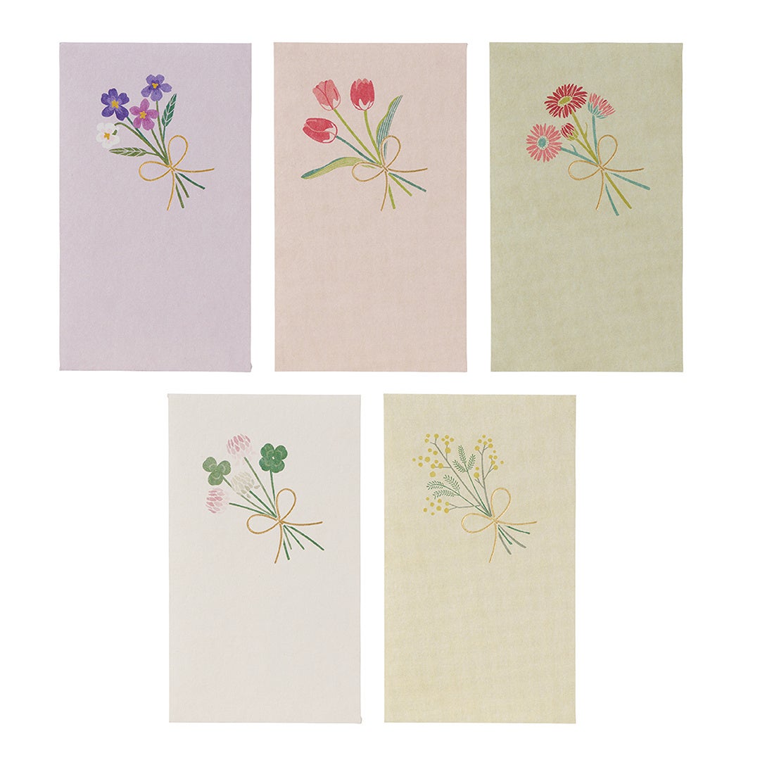 価格:275円(税込)/種類:5種(スミレ・チューリップ・ガーベラ・クローバー・ミモザ)/製品寸法:65×110mm/内容: 3枚