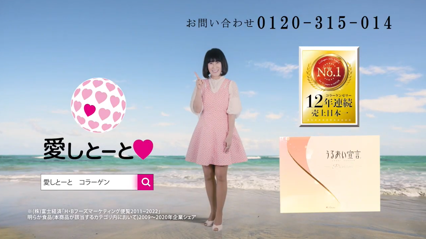 株式会社愛しとーと(本社:福岡県那珂川市、代表取締役兼CEO 岩本初恵)の主力商品である食べるコラーゲンゼリー「うるおい宣言プレミアム」発売にあたり、代表岩本初恵(以下:はっちゃん)が出演した新CMを放送します。「うるおい宣言」シリーズは、2006年3月の発売以来、大変好評をいただき、13年連続売上日本一(※1)を更新しました。人気商品となった理由は研究に研究を重ねた「味」にある、と開発責任者である代表はっちゃんは語ります。