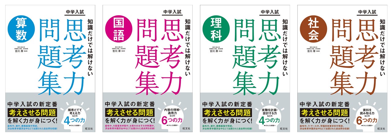 教育出版の株式会社旺文社(東京都新宿区、代表取締役社長 粂川秀樹)は、6月20日、中学入試対策の新シリーズ「知識だけでは解けない思考力問題集」算数・国語・理科・社会の計4冊を刊行いたしました。