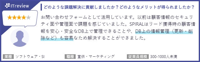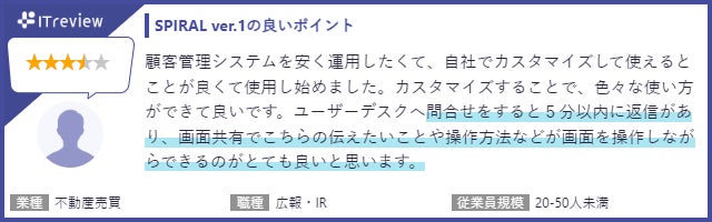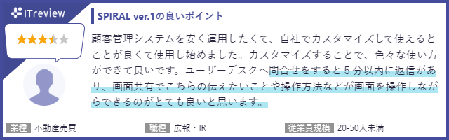 「SPIRAL ver.1」に対するITreviewユーザー評価 ※一部抜粋