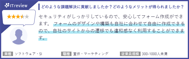 このたび頂戴したユーザー様コメントでは、「問合せをすると5分以内に返信があり、画面共有でこちらの伝えたいことや操作方法などが画面を操作しながらできるのがとても良いと思います」、「フォームのデザインや構築も自社に合わせて自由に作成できるので、自社のサイトからの遷移でも違和感なく利用することができます」、「DB上の情報管理(更新・削除など)も容易」など、当社ユーザーズデスクの対応の即時性および画面共有サポートの利便性、システムの柔軟性や情報管理のしやすさに対するご評価をいただきました。