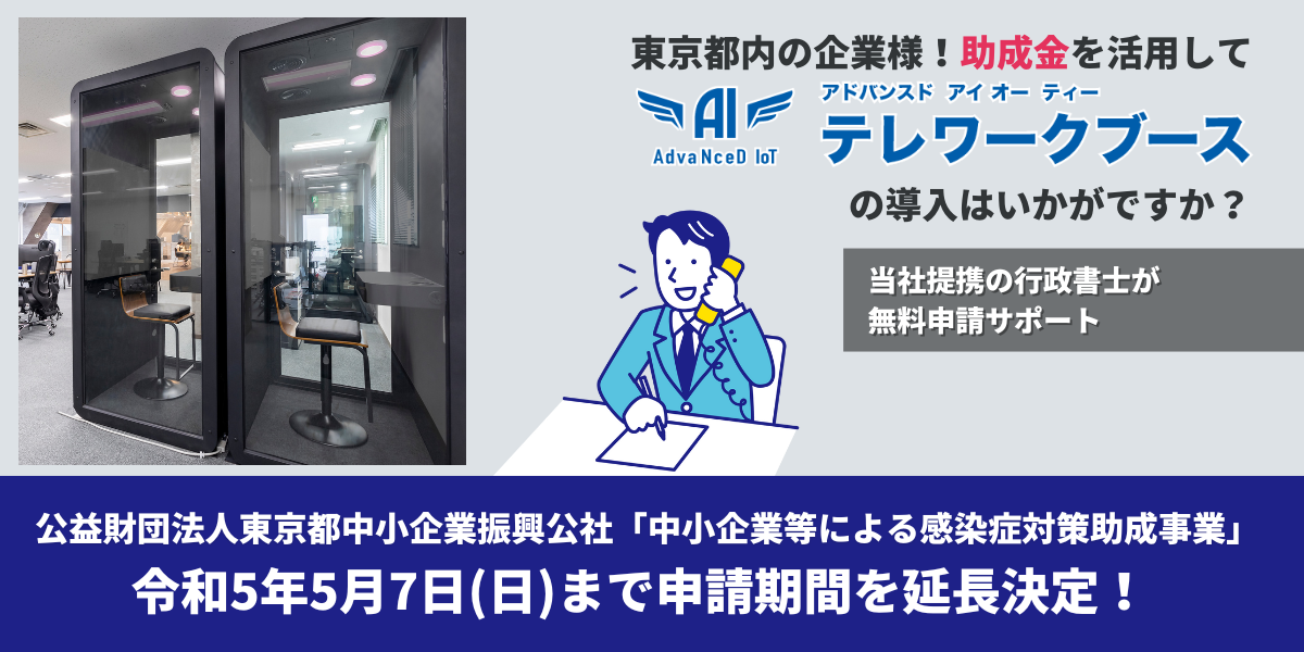 【AdvaNceD IoTテレワークブース購入費用 最大2/3補助】東京都中小企業振興公社「感染症対策サポート助成事業」申請期間延長に伴い、申請サポートも受付延長を決定!