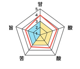 ※甘味・塩味・酸味・苦味・旨味による五角形の味覚チャートにおいて、五角形に近づく、ないしは五