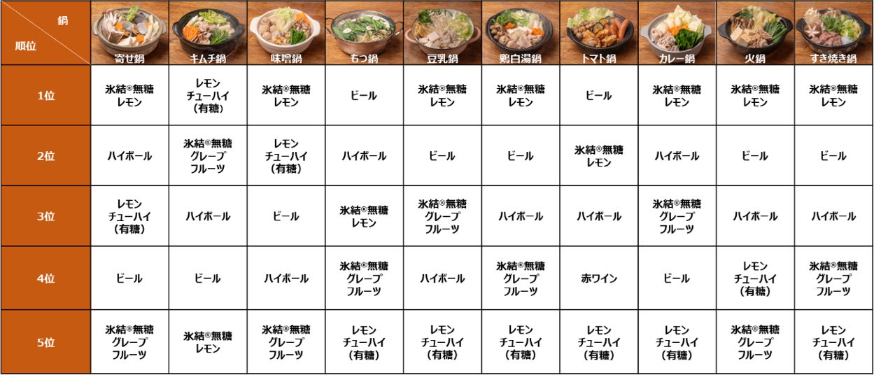「氷結®無糖 レモン」が7種の鍋で最高得点を獲得!