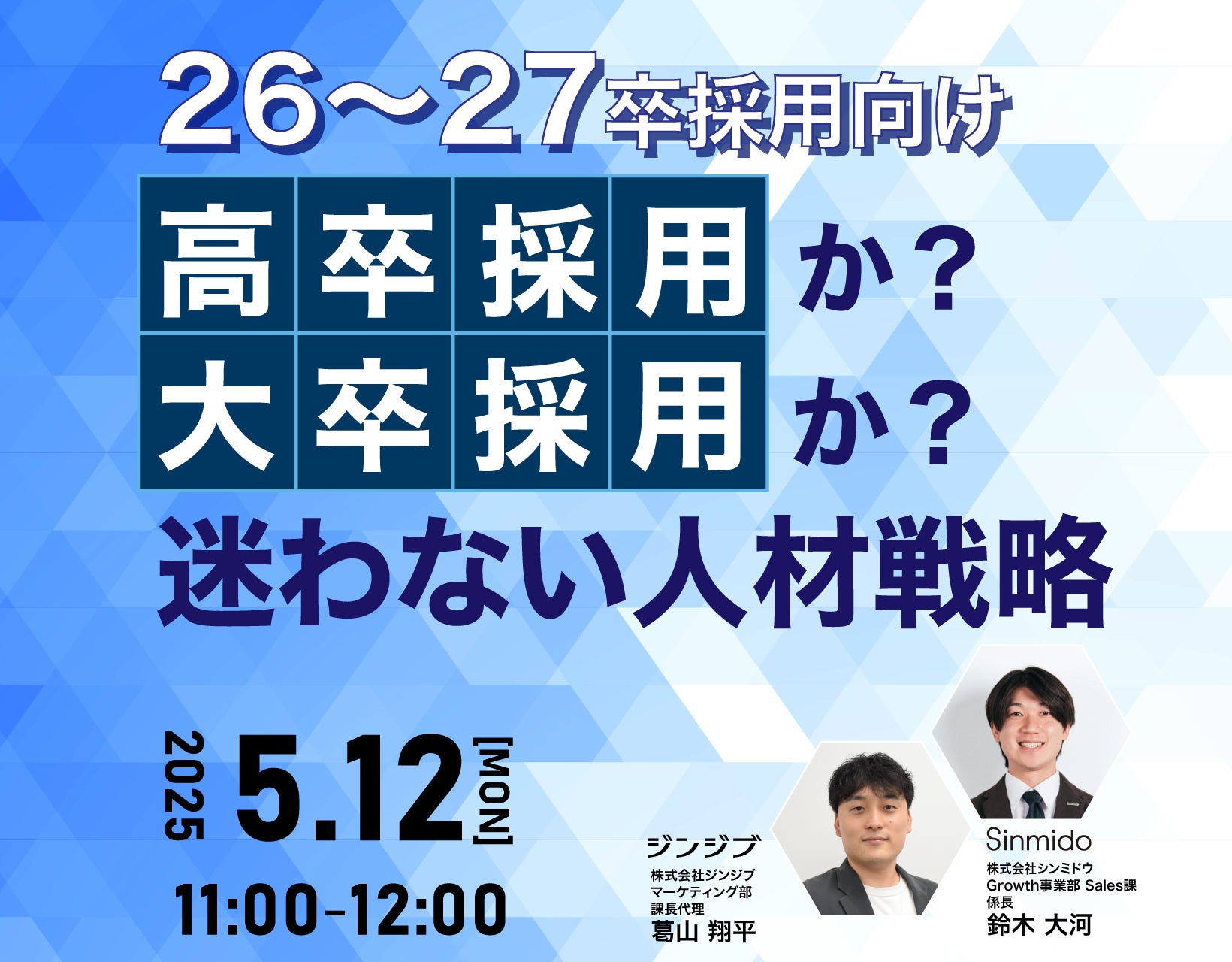 株式会社シンミドウ(本社:埼玉県さいたま市)は、株式会社ジンジブ様(本社:東京都品川区)共催にて、高卒採用や大卒採用を行う企業様を対象にセミナーを開催いたします。