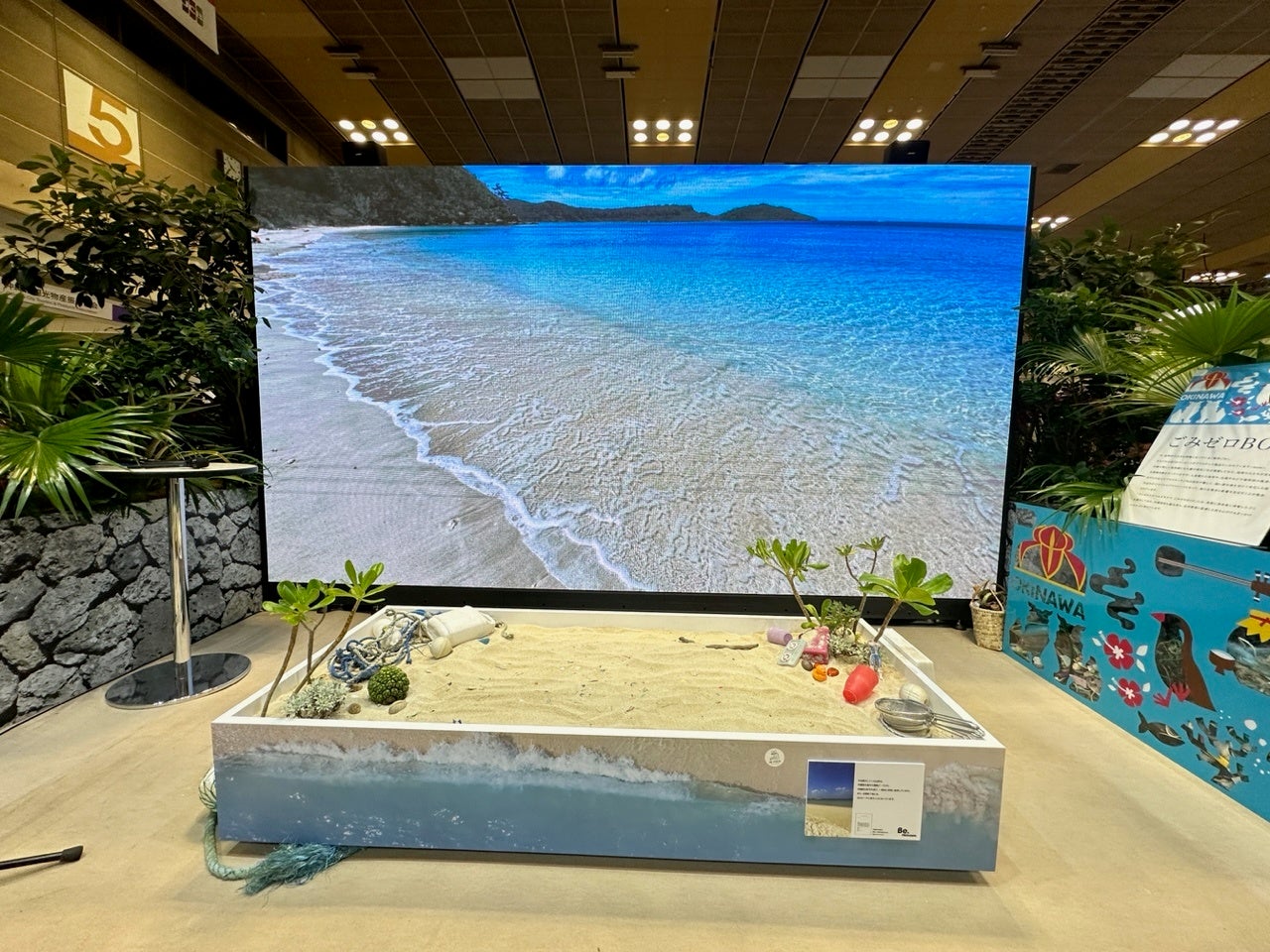 海面や海中を漂っている「漂流ゴミ」や、それらが海底に積もった「海底ゴミ」、そして海岸に流れ着いた「漂着ゴミ」などの「海洋ゴミ」が、世界中で問題になっています。環境省の調べによると、ゴミの約80%がプラスチック製品だといわれています。沖縄県の美しいビーチは、世界中から訪れる多くのツーリストを魅了しています。しかし近年では、「海洋ゴミ」が大量に打ち寄せられ、大きな課題となっています。一見すると白砂が美しいビーチでも、よく見てみると、砂の中や、海藻や種などの自然の漂着物の中に小さく砕けたプラスチック片が混ざっています。こうした小さなプラスチック片は大きなゴミよりも回収が難しく、放置されると、やがて南の島の強い太陽と風にさらされて5ミリ以下のマイクロプラスチックとなり、海辺の生物が食べたり、有害物質が土壌や水脈に浸透するなどして島の生態系に悪影響を及ぼすことが懸念されています。そんな深刻な問題を体験して、考えるためのワークショップを実施。会場に用意された砂浜の砂の中には、実際に海岸で回収してきたマイクロプラスチックが混ぜられており、その回収作業を体験いただきます。この体験を通して、沖縄の海岸の現状や、マイクロプラスチック問題を知り、環境への取り組みについて考えるキッカケになればと思っています。