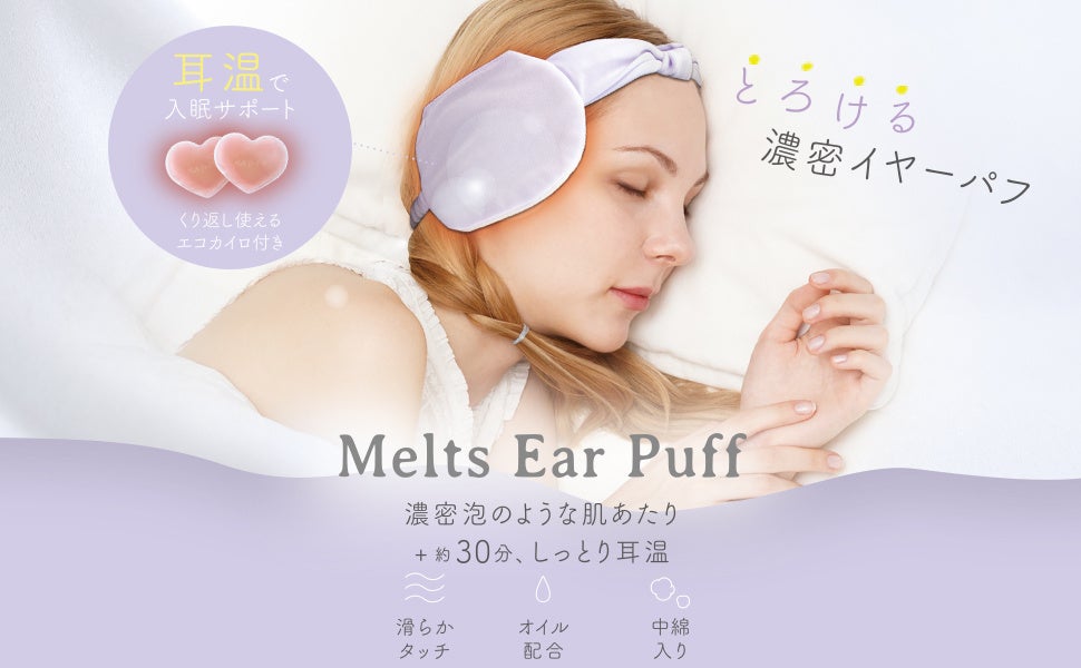 【新発売】就寝前に、しっとり耳温で入眠をサポート。植物性スクワランオイル配合の濃密メイクパフ素材でお肌にも優しい「とろける濃密イヤーパフ」新登場。