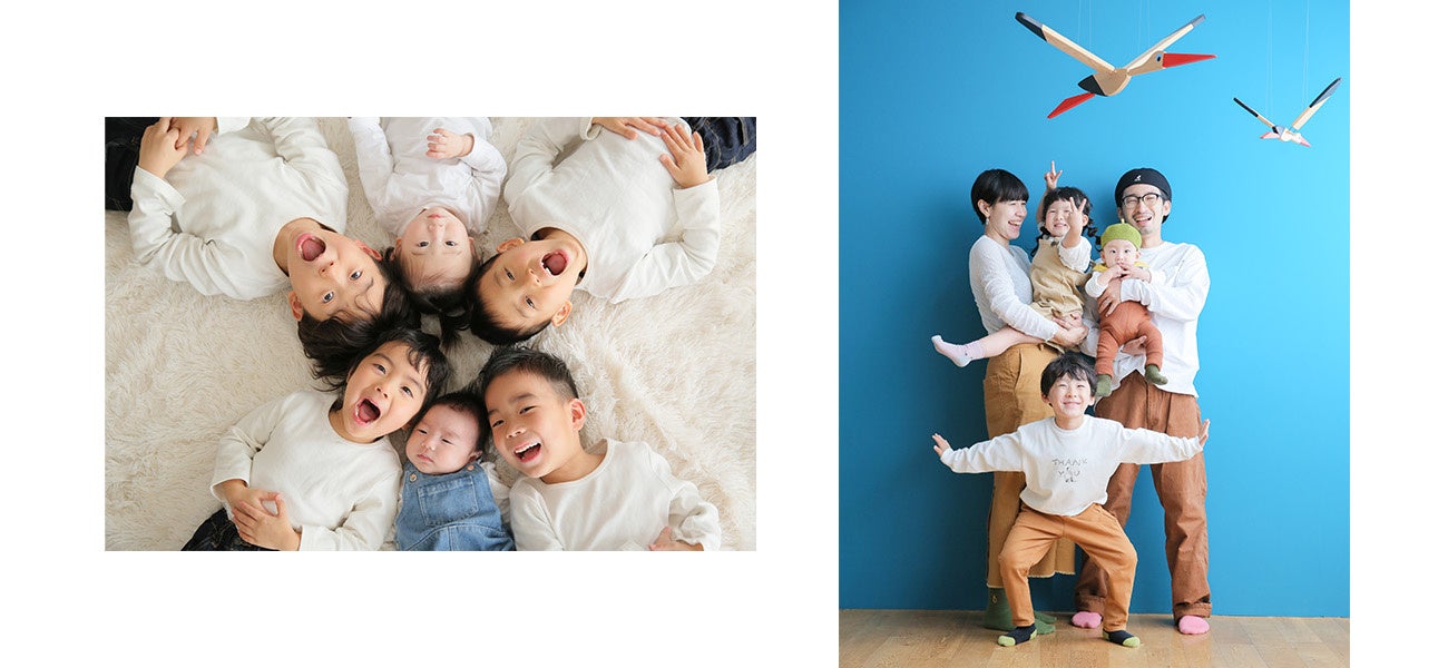 マタニティ・お宮参り・ハーフバースデー・誕生日・七五三・入学・卒業といったライフイベントの記念はもちろん、特別な日ではなくても、毎年の成長の記録にご来店いただけるフォトスタジオ。撮った写真も、ハピスタで過ごす時間もずっと家族の思い出になるようにと考えながら撮影を行っています。
