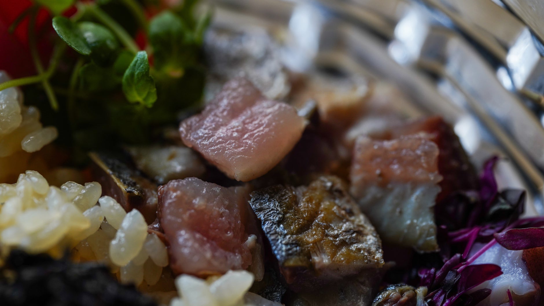 金沢といえば海鮮丼と言われるほど、金沢グルメの代名詞ともなっている海鮮丼。TILEでは、一般的な海鮮丼とは違い、薬味として位置付けているマイクログリーンと、約30種類の新鮮な魚介類や昆布〆などのネタから、お好きなネタをご自由に丼に盛り付けてお召し上がりいただく、体験型の海鮮丼を提供しています。シャリは通常の白シャリと、こだわりの赤酢を混ぜ合わせた赤シャリをご用意いたしました。