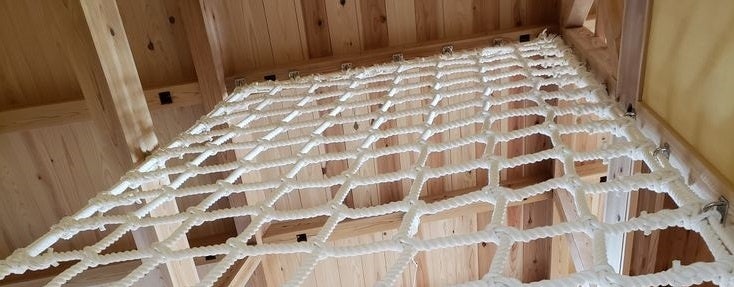 ・2階からロフトにかけての吹き抜けの壁面には「アスレチックネット」