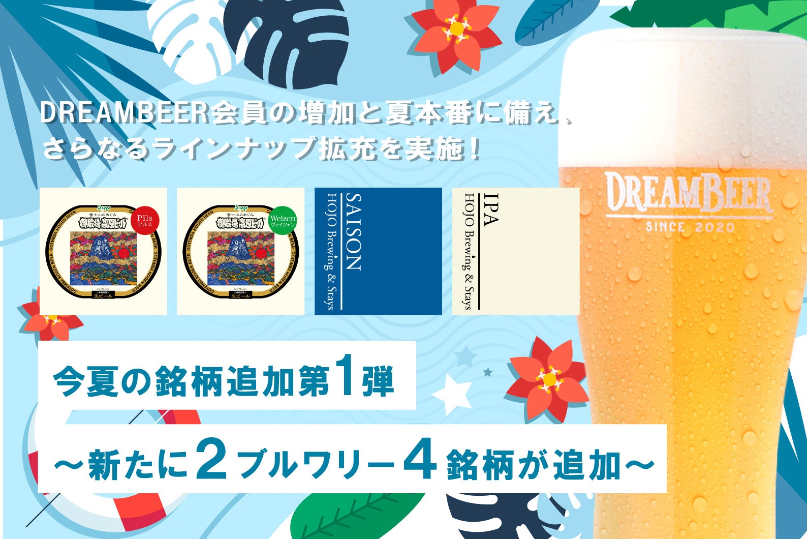 DREAMBEER会員の増加と夏本番に備え、さらなるラインナップ拡充を実施!今夏の銘柄追加第1弾 〜新たに2ブルワリー4銘柄が追加~