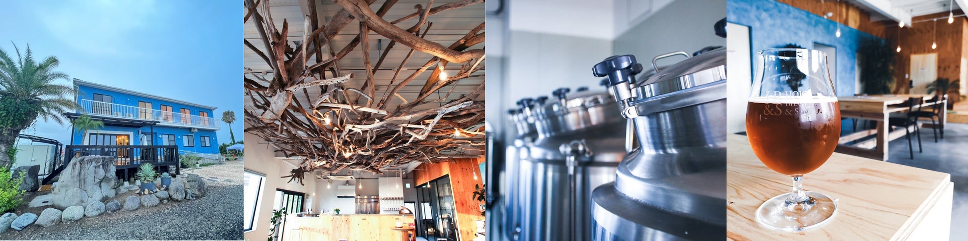 HOJO Brewing & Staysは、愛媛県松山市北条エリアの通称モンチッチ海岸に面した、「日本でいちばん海に近い」クラフトビールの醸造所です。併設のタップルームでは海を眺めながら出来たてのクラフトビールを堪能できます。ブルワリーの2 階は1 棟貸しのゲストハウスとなっており、宿泊しながらゆっくりクラフトビールを楽しむことも可能です。