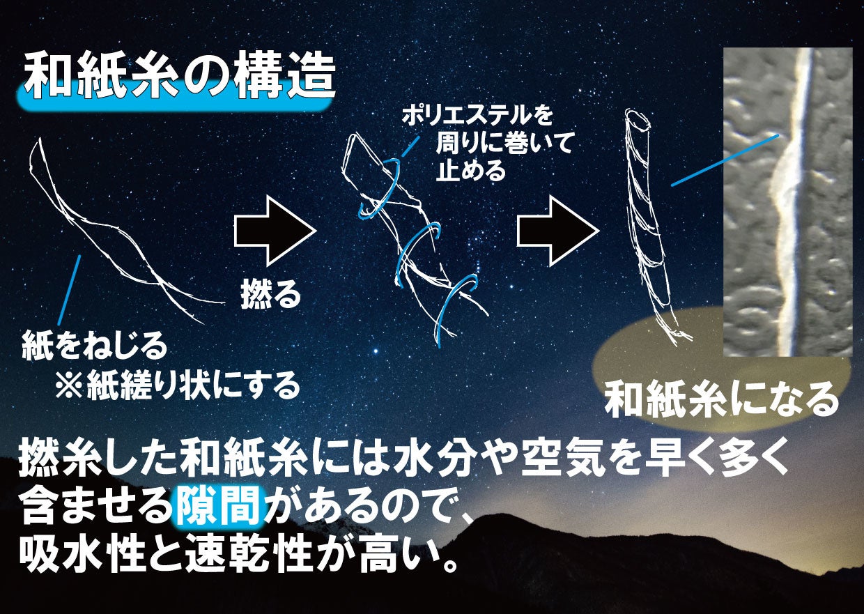 アウトドア専用タオルですが、実は和紙糸を使用したタオルなんです!!