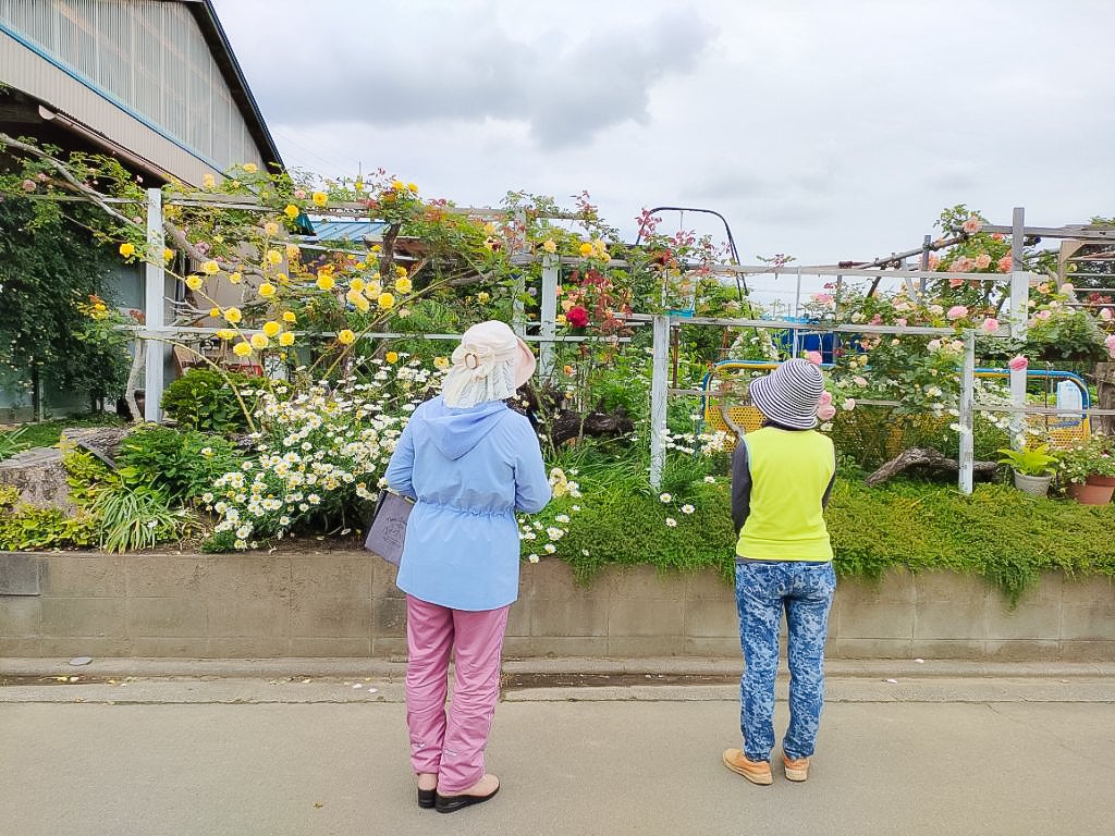 毎年、このオープンガーデンを楽しみにしている花結会の皆さん。