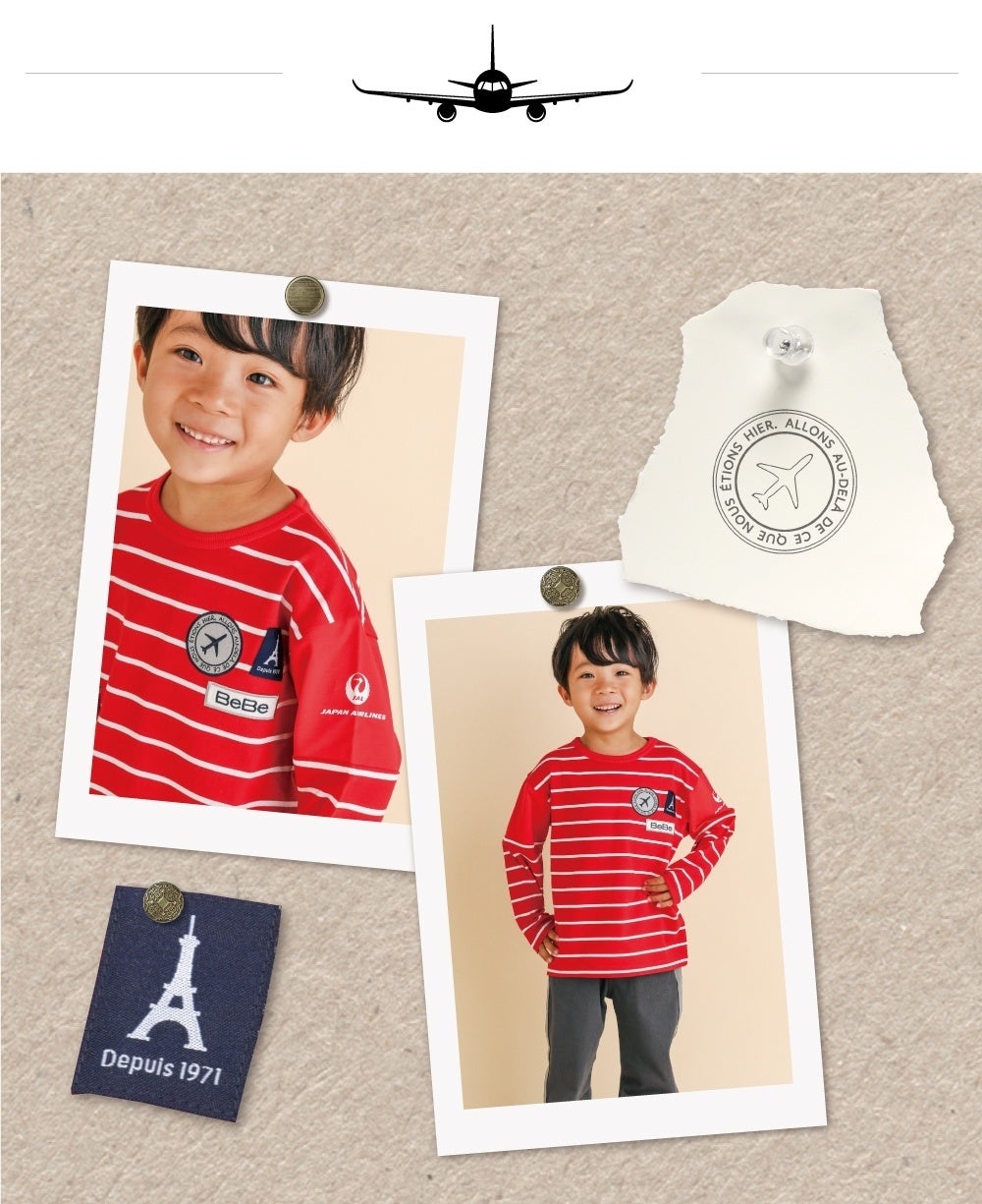 「JAL (JAPAN AIRLINES、日本航空株式会社)」とのコラボレーションアイテムが子供服ブランド「BeBe(べべ、株式会社べべ)」より新登場‼