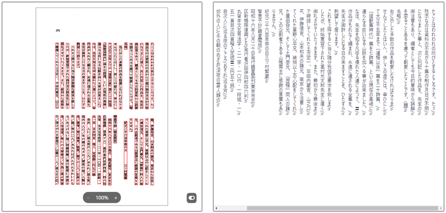 本研究では、旧字旧仮名や特殊なレイアウトに対応可能な「FROG AI-OCR」を活用することで、近代文学の形態素解析の効率化を図り、新たな文学研究の可能性を提供することを試みています。