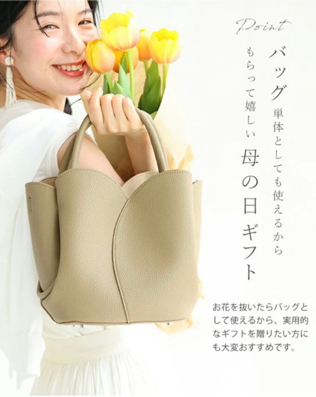 母の日の贈り物。チューリップバッグにお花をぎゅっとつめこんで。2Wayで楽しめる『バッグ×フラワー』で感謝と愛をおくろう