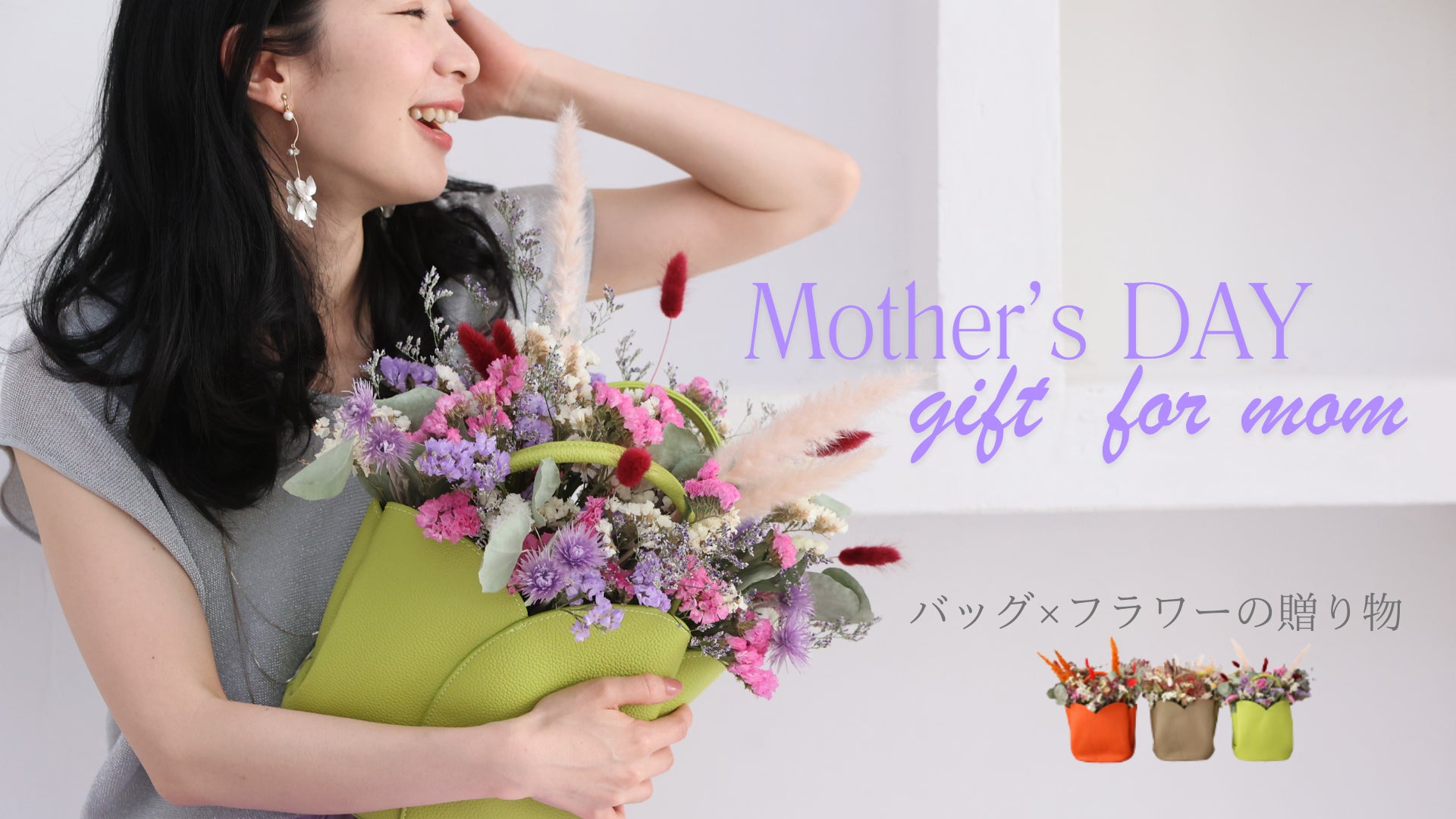 2025年4月18日20時~5月8日正午までの期間限定「母の日」ギフト。アパレル会社が手掛けるバッグ×フラワーで2度楽しんでいただけるギフトです。
