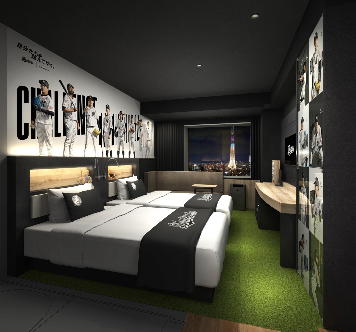 ロッテシティホテル錦⽷町(所在地:東京都墨⽥区錦⽷4-6-1、総⽀配⼈:福井朋也)は、株式会社千葉ロッテマリーンズ(千葉県千葉市美浜区美浜1番地 ZOZOマリンスタジアム 代表取締役社長:高坂 俊介)とのコラボレーションルーム『マリーンズルーム』の内装をリニューアルし、新たにお部屋の予約を開始いたします。