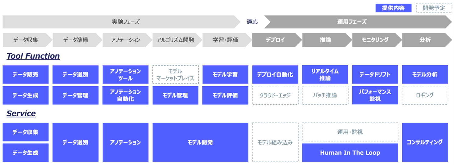 データ生成からアノテーション、モデル開発、MLOps構築まで、 AI開発の各プロセスを全方位的にサポート