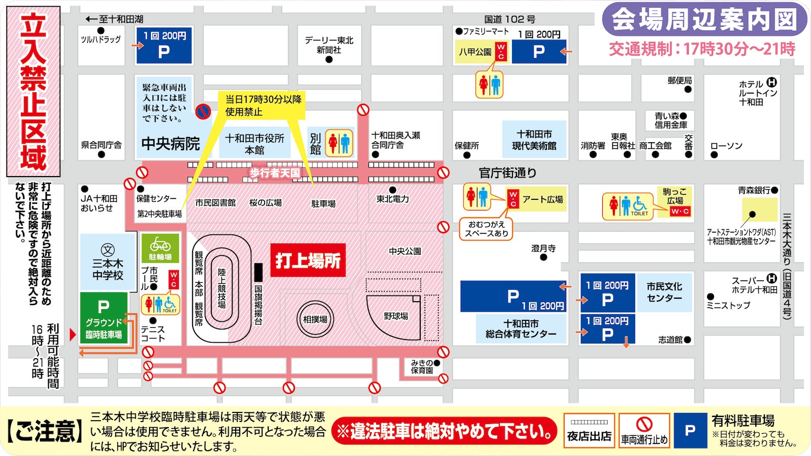 現地:十和田市陸上競技場西側観覧席、十和田市官庁街通り歩行者天国地内