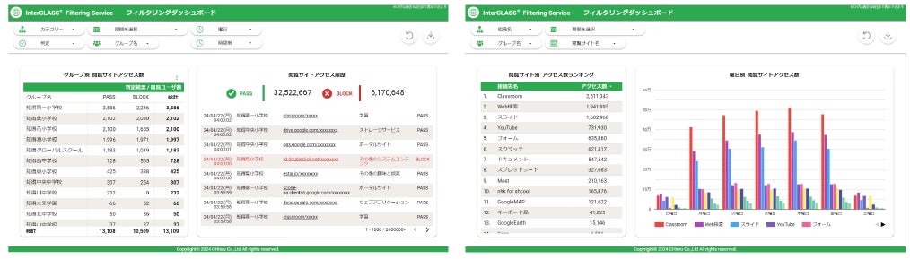 チエル、『InterCLASS® Filtering Service』のWebフィルタリングダッシュボードオプションを2024年8月にリリース