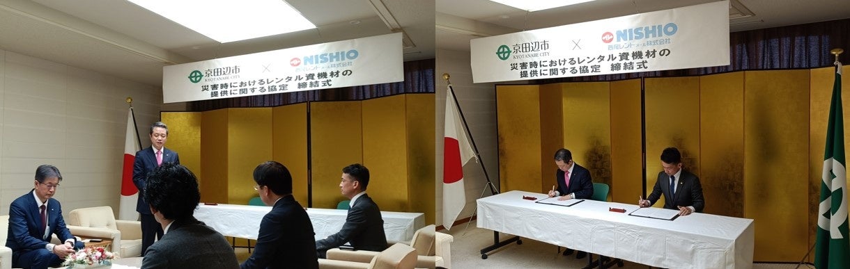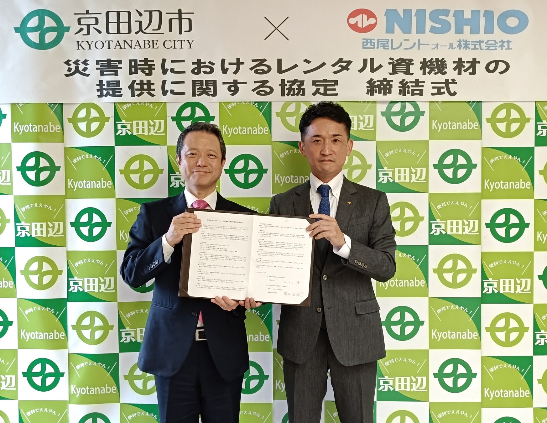 西尾レントオールと京都府京田辺市は「災害時等におけるレンタル資機材の提供に関する協定」を締結しました