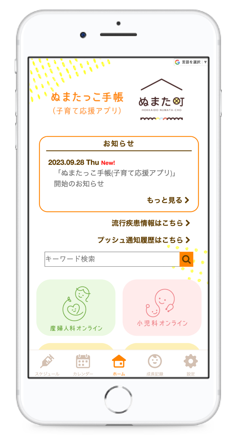 アプリ名:ぬまたっこ手帳(子育て応援アプリ)