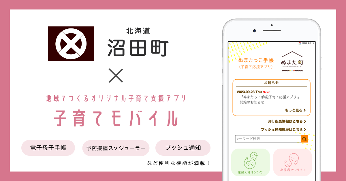 ミラボ、北海道 沼田町で子育て支援アプリ「ぬまたっこ手帳(子育て応援アプリ)」提供開始