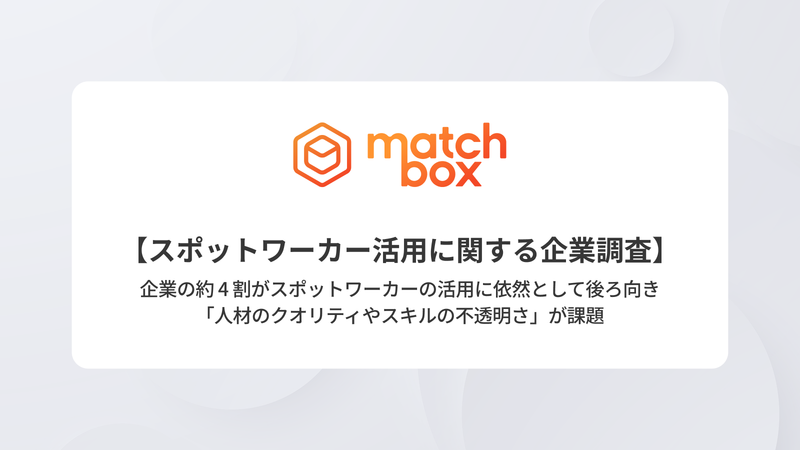 Matchbox Technologiesグループは、人材雇用・労務管理を一体とした人材マネジメントのデジタル化により、本調査で明らかとなった、企業におけるスポットワーカー活用の課題や、人材確保における課題解決を目指していきます。