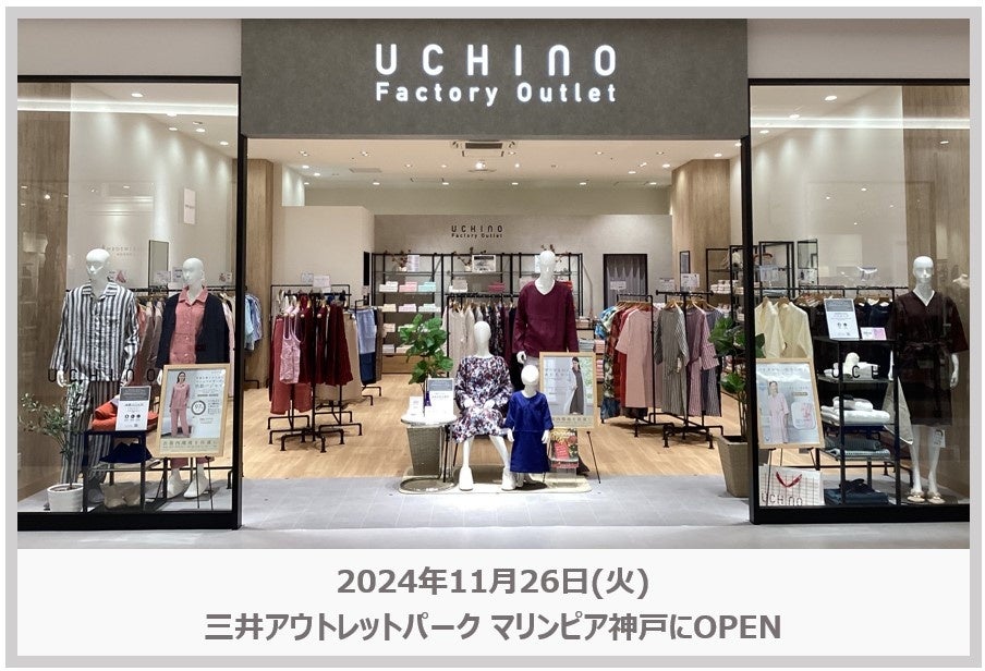 バスタイムから快眠まで、健やかで心地よいライフスタイルを提案する内野株式会社(本社:東京都中央区/代表取締役社長:内野信行)は、全面建て替えされた「三井アウトレット マリンピア神戸」に新店舗を2024年11月26日(火)にオープンすることをお知らせいたします。関西エリアのアウトレットで初の出店、また国内のアウトレット店舗では5店舗目となります。上質な綿で織り上げられた思わず触りたくなるタオルやバスローブ、衣服内環境を快適にする特許素材のパジャマやリラクシングウェアなどをラインアップし、「新しいモノとコトに出会う」体験価値を創出していきます。(https://www.uchino.co.jp/)