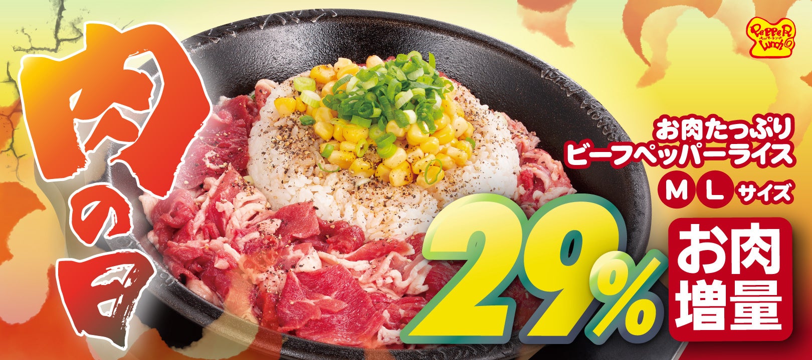 「お肉たっぷりビーフペッパーライス」のお肉が、お値段そのままでさらにボリュームUPする特別サービスは肉の日だけ!お肉増量分の