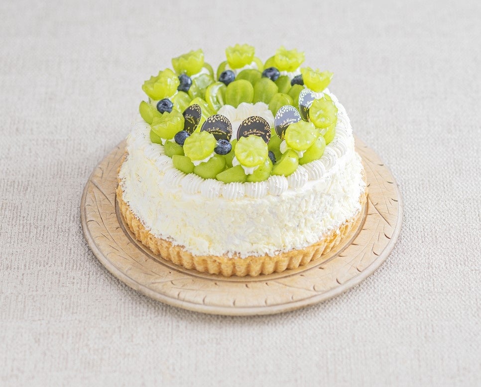 ブルーベリークリームをふわふわスポンジとサンドし、カスタードタルトに重ねました。弾ける食感のシャインマスカットを華やかに飾ったショートケーキタルトです。