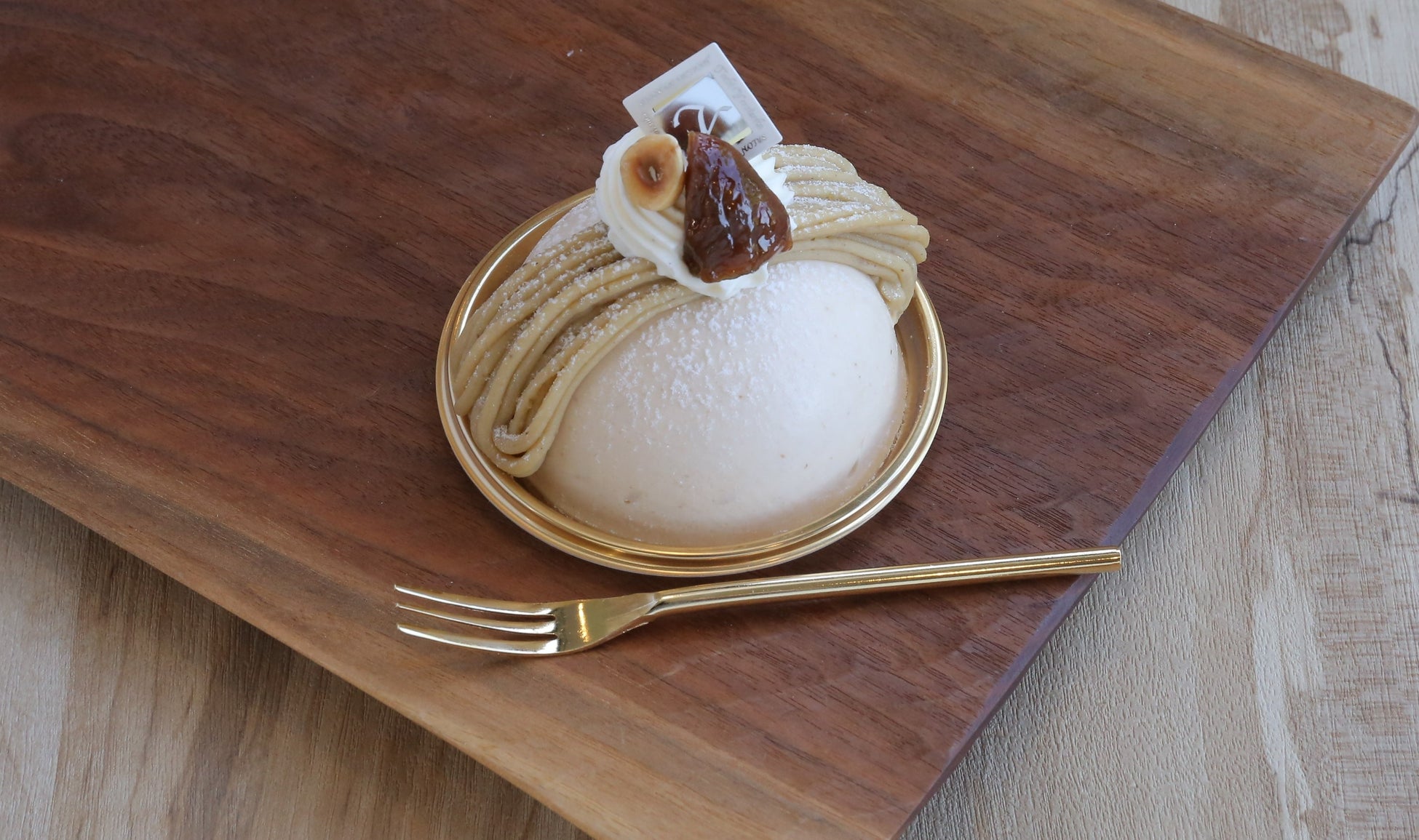 洋なしのダイスカットと洋なしのムースをまろやかなマロンのムースで包み込みました。生地はヘーゼルナッツを使い、よりよい口どけを演出します。